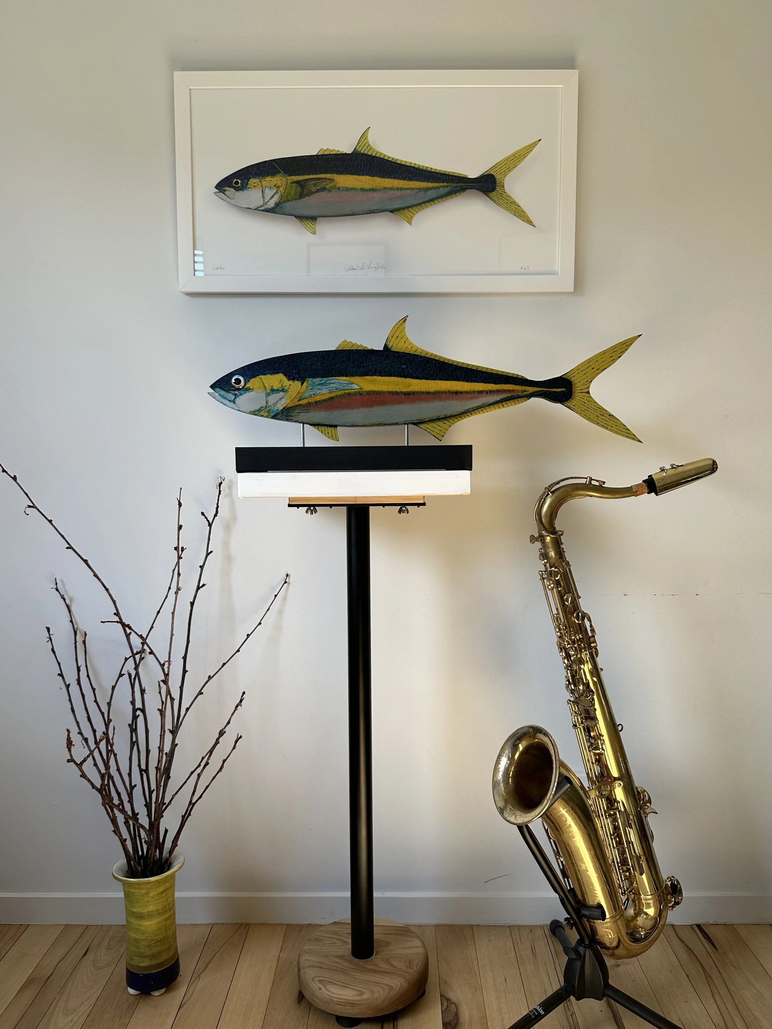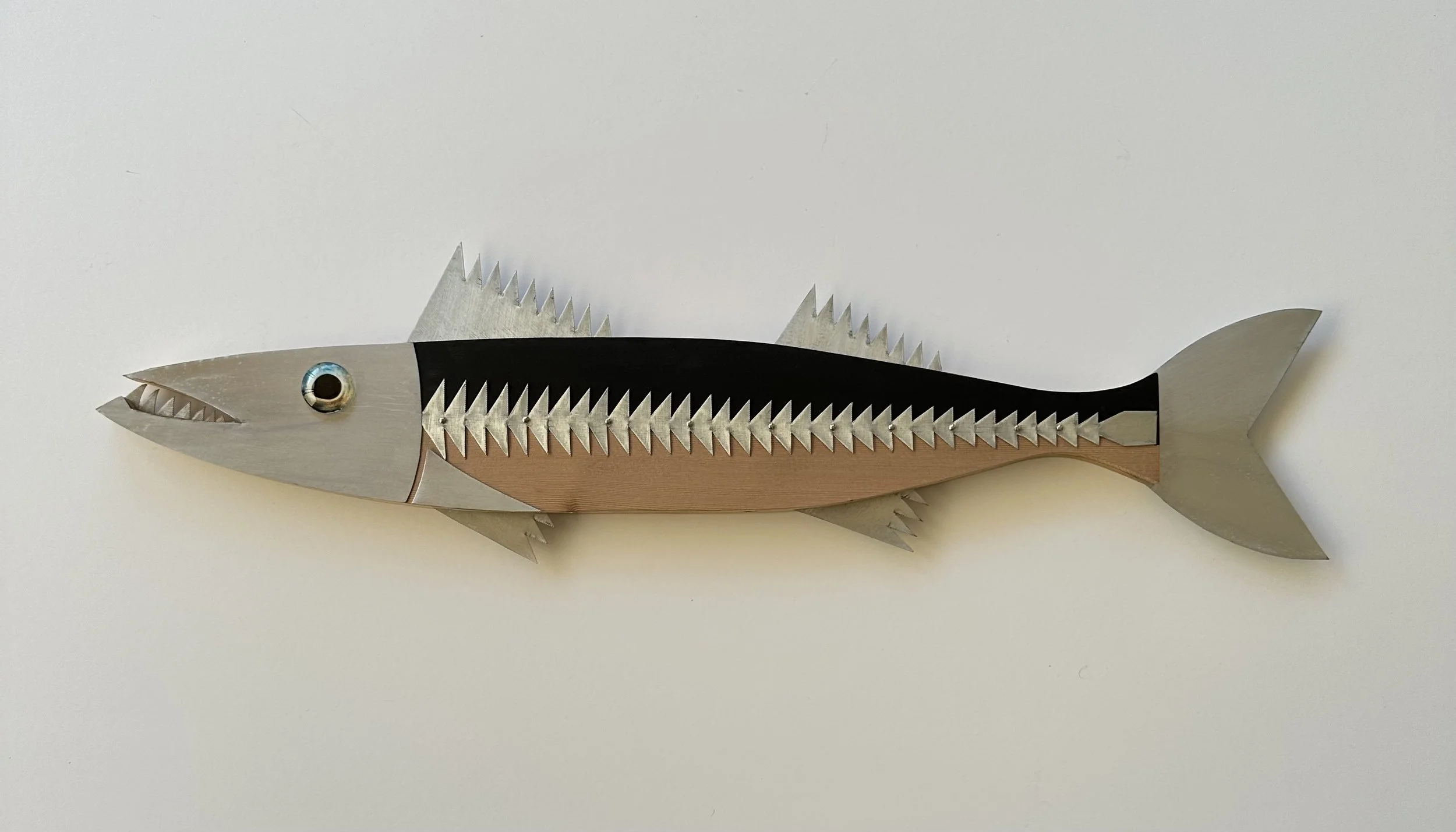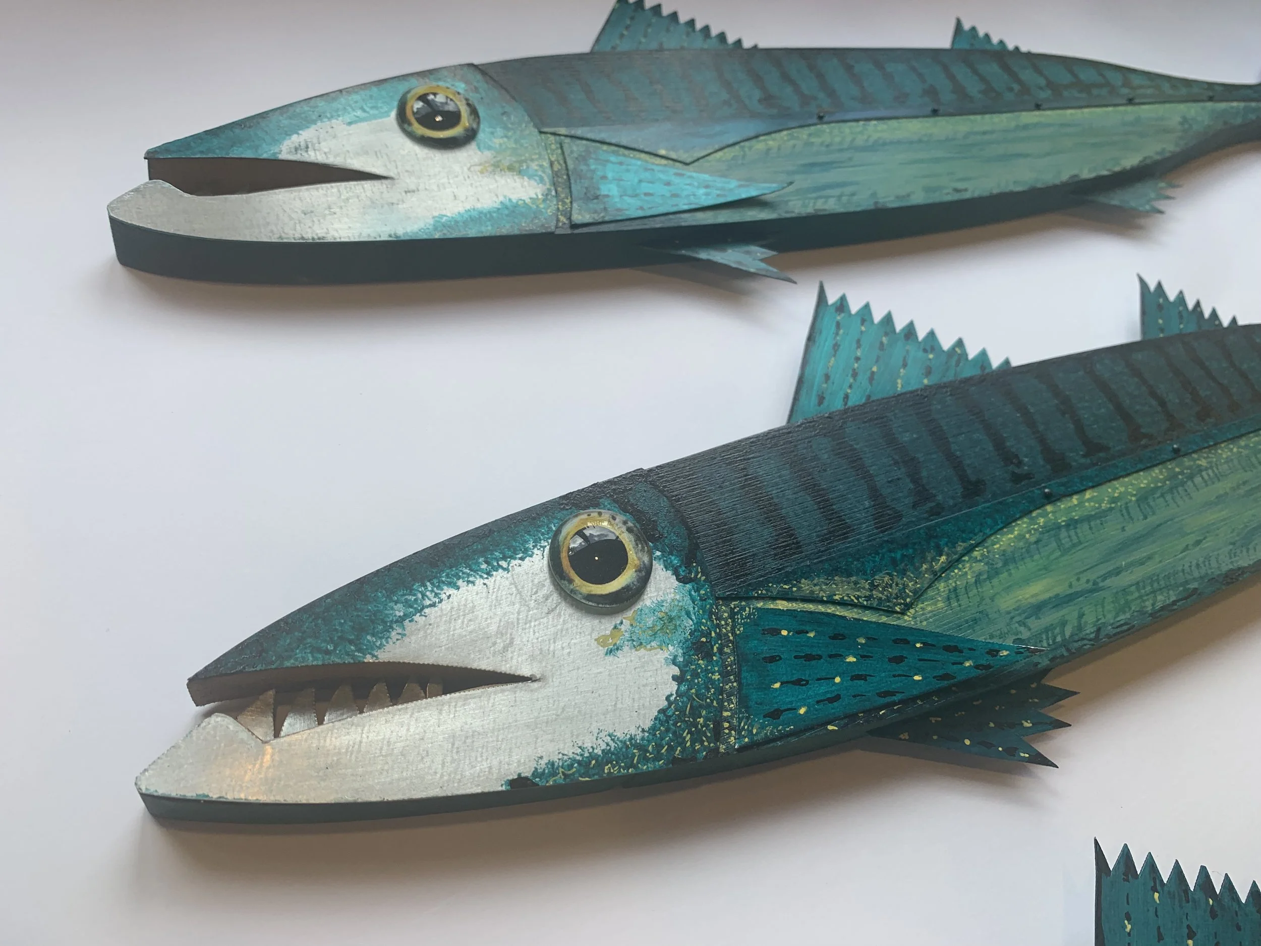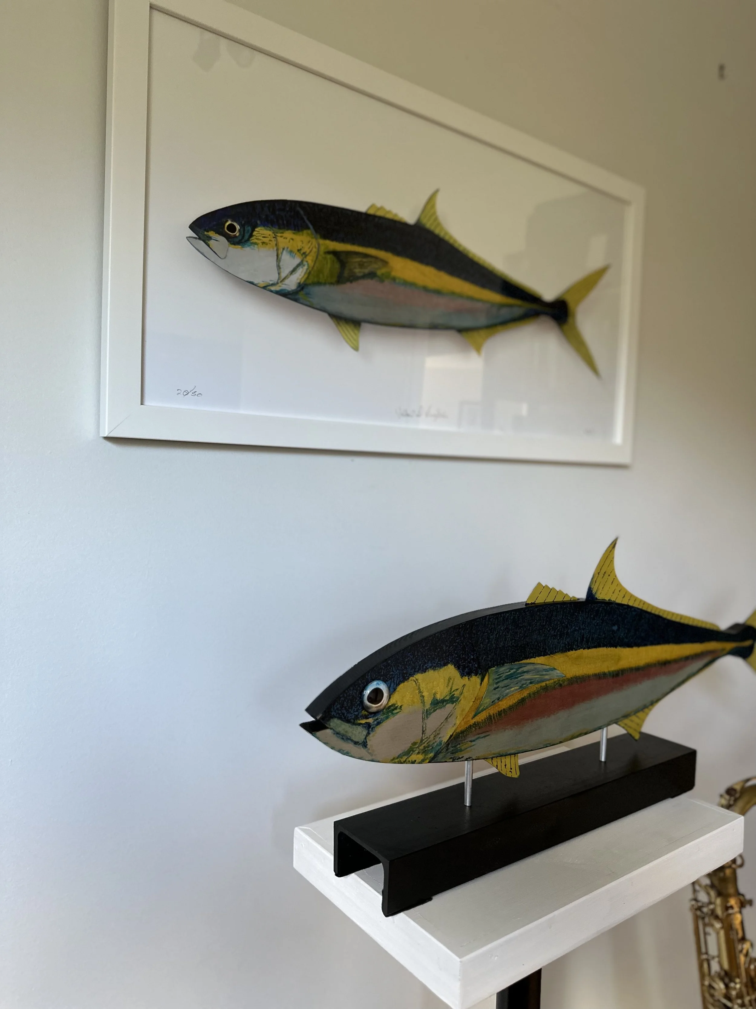 I created the Barracuda Trio over the covid lockdowns. They have been in two exhibitions, but until now, they have not been for sale. They are now available for sale. They are 3 different abstract pieces and are eye catching on a white wall. NOTE: they only have a wall mounts. The Limited edition prints have sold well online and in galleries as the image is unique.