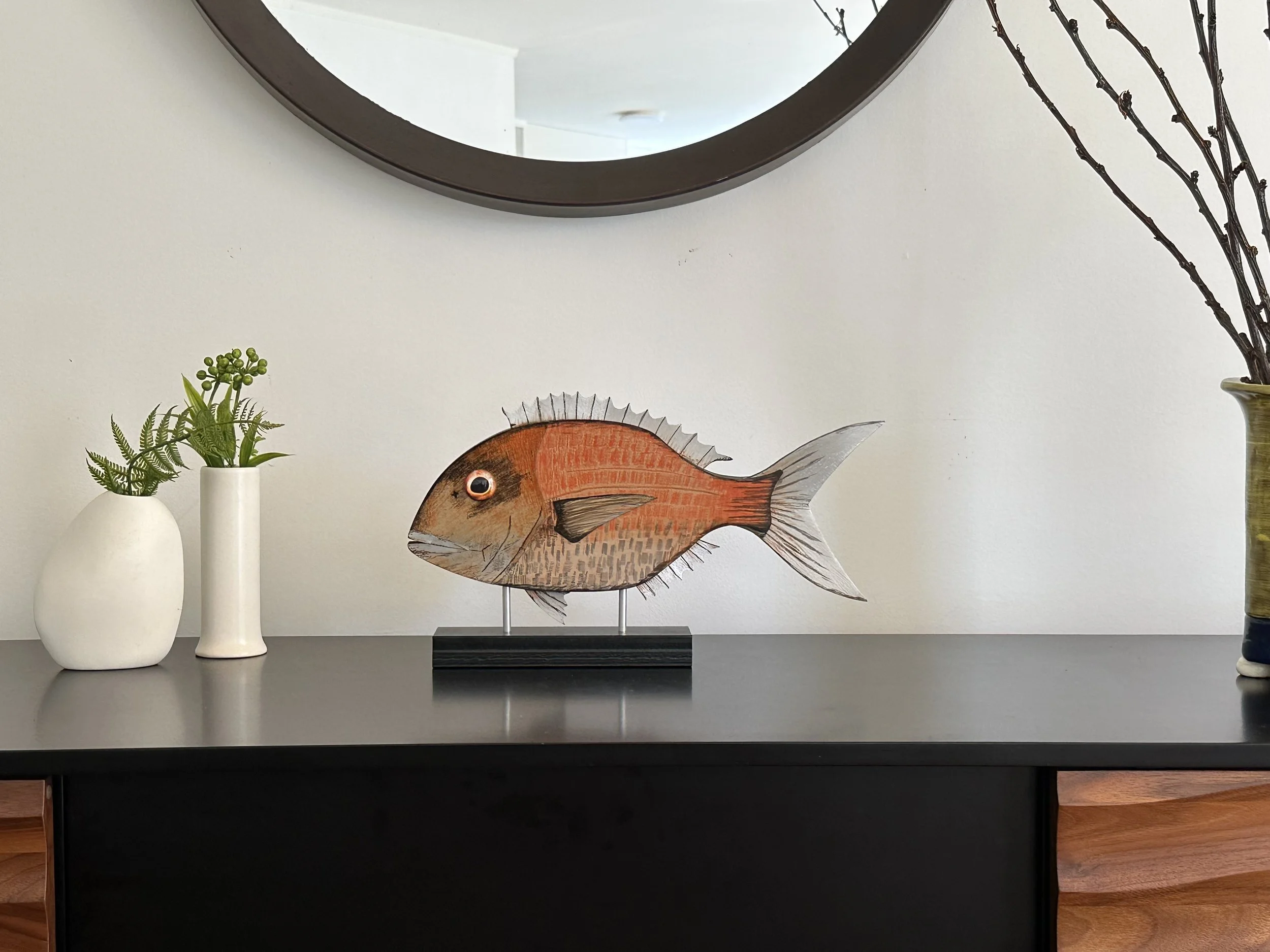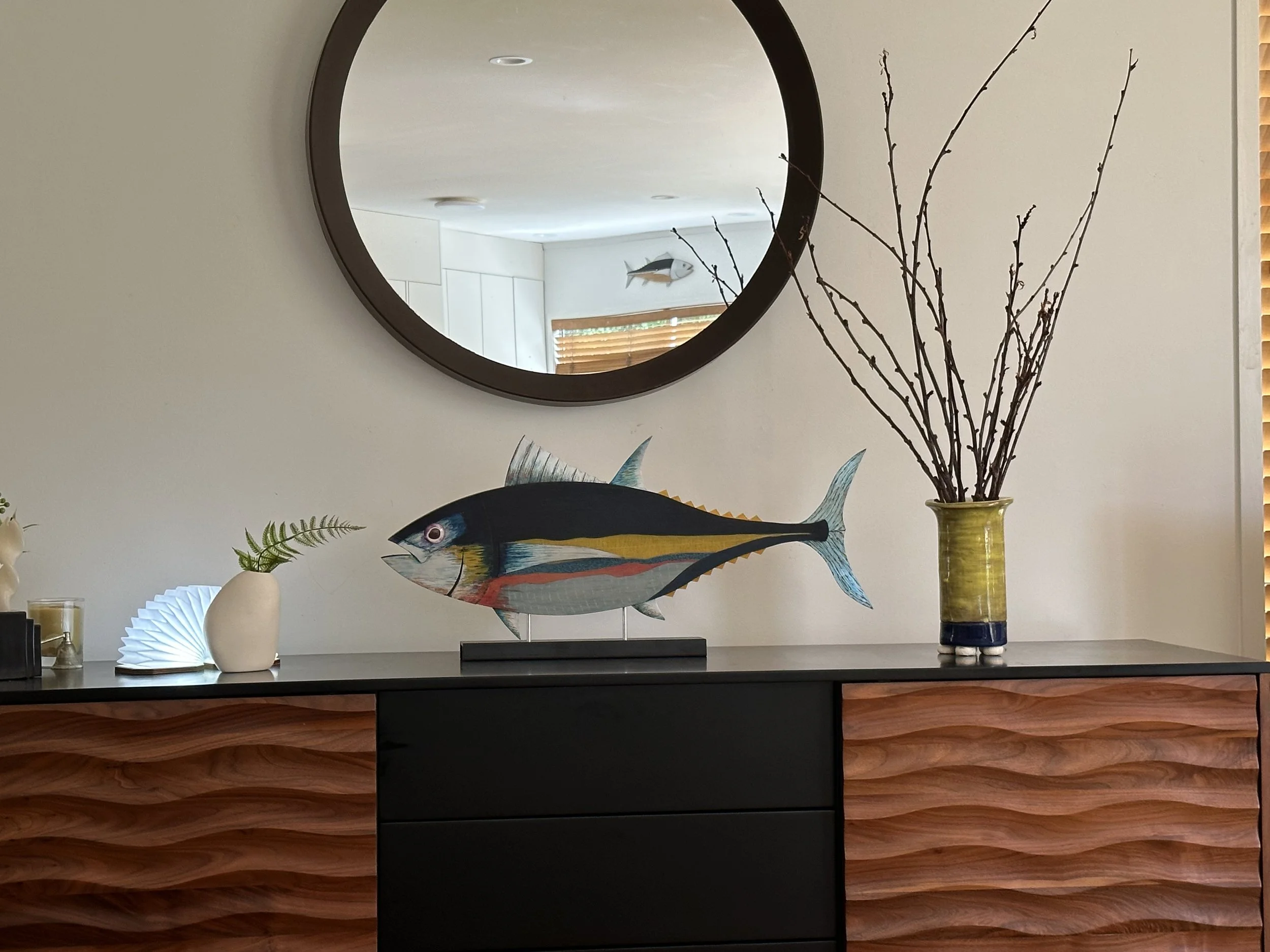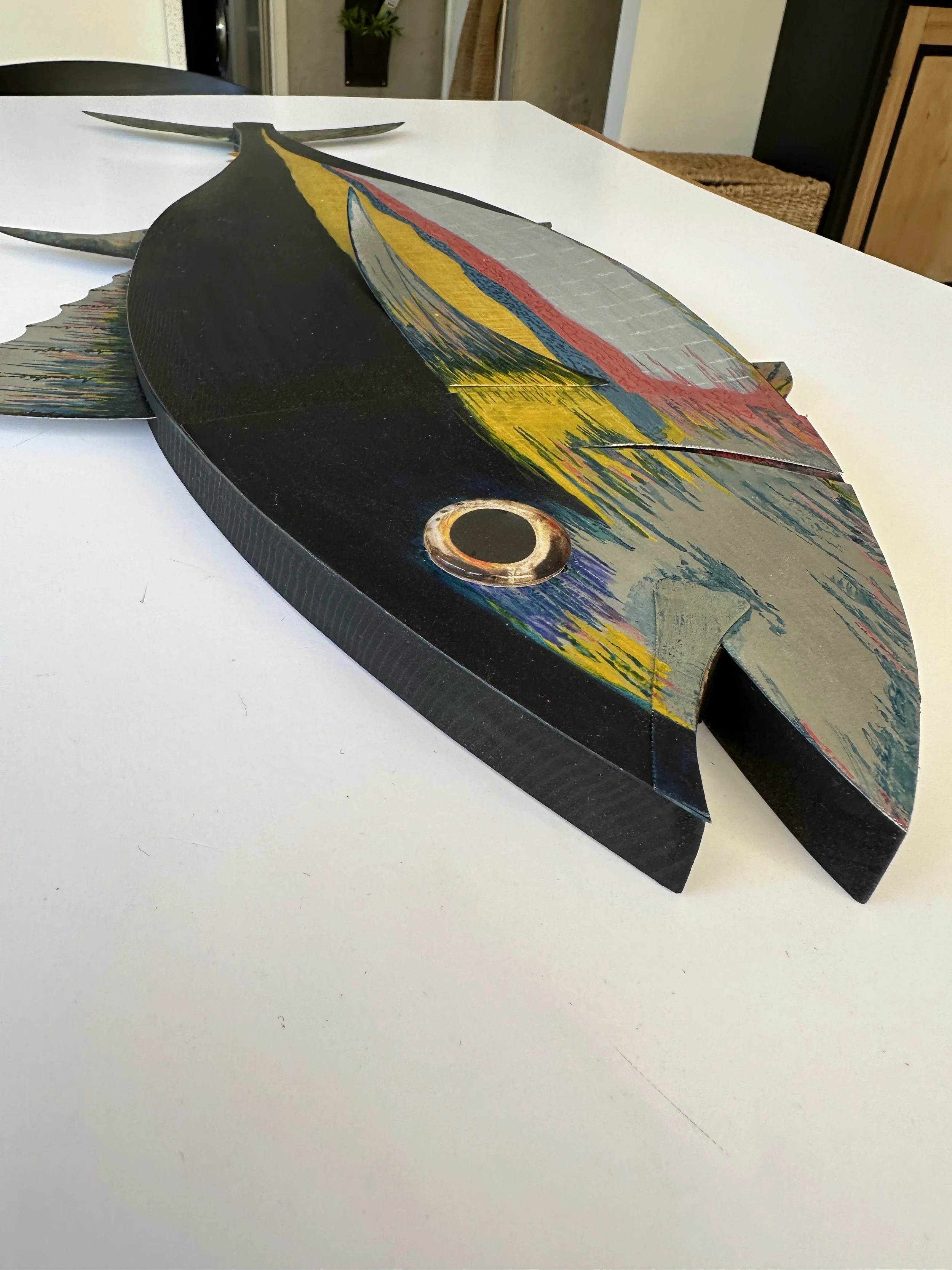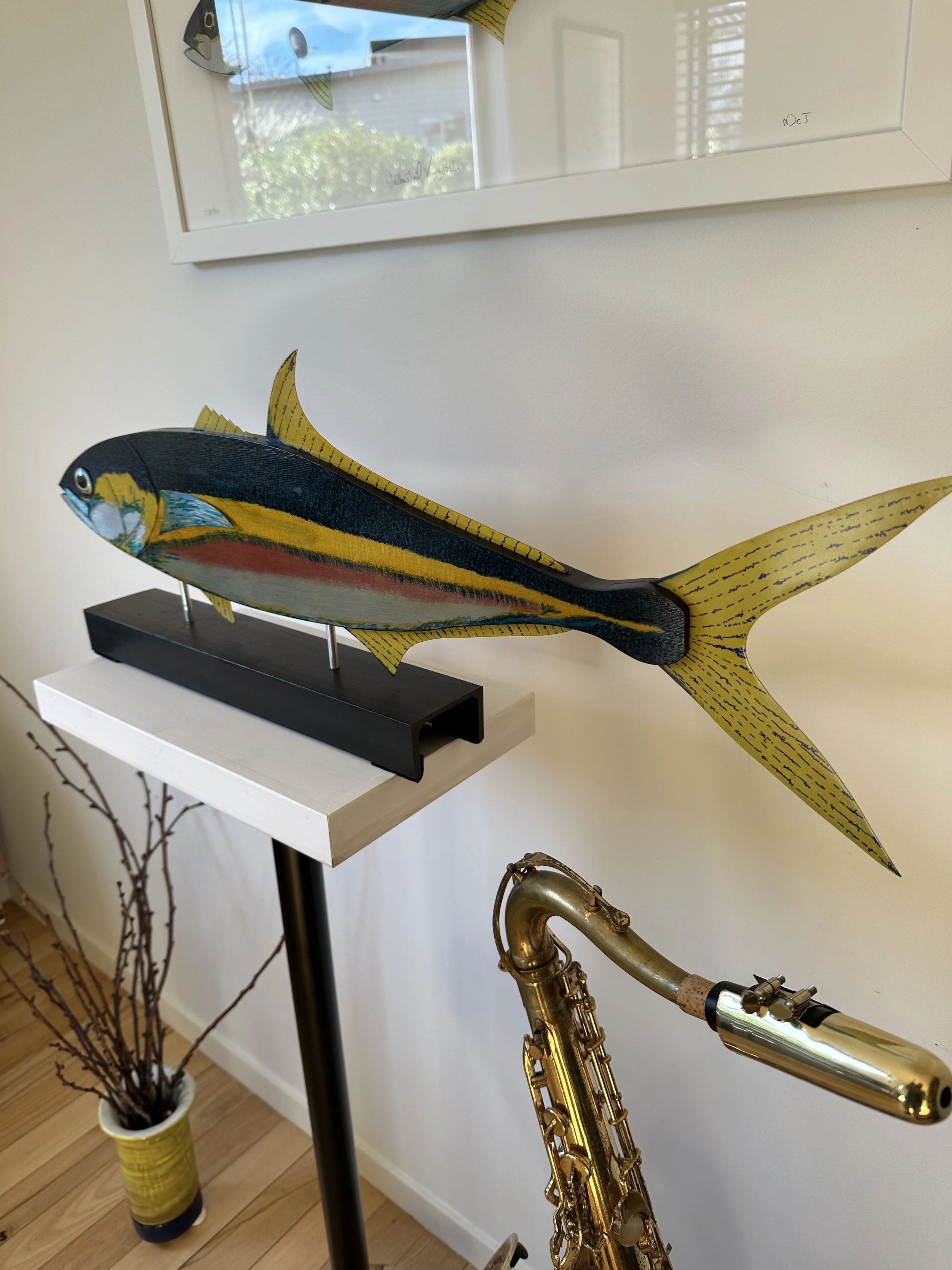 I created the Barracuda Trio over the covid lockdowns. They have been in two exhibitions, but until now, they have not been for sale. They are now available for sale. They are 3 different abstract pieces and are eye catching on a white wall. NOTE: they only have a wall mounts. The Limited edition prints have sold well online and in galleries as the image is unique.