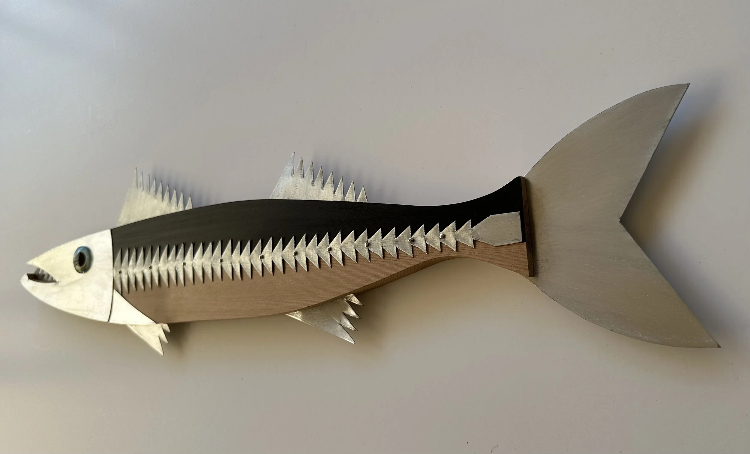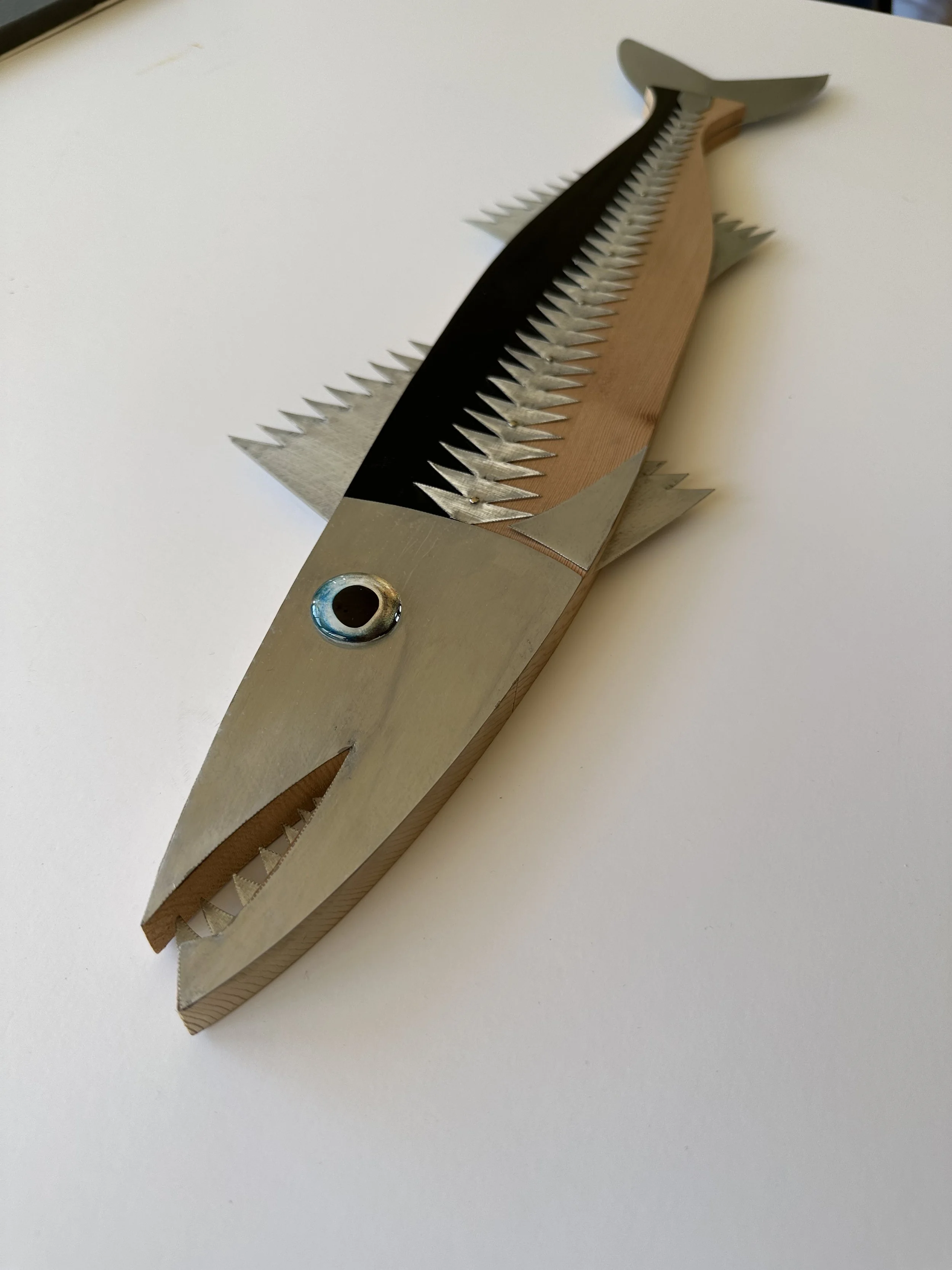 Sid Vicious is a continuing run of Black Barracuda. They are abstract and are sharp all over. The tails and central body spin change quite often to give a bit of variety. The teeth are sharp. I currently have 3 versions of Black Barra’s for sale. Happy to send you a picture of each if you are interested in purchasing one.
